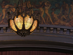 Belasco conceived the auditorium of the Belasco Theatre as a living room. He was a proponent of the “Little Theater” movement, which held that the dramatic experience depended partly on the proximity of the audience to the actors, and the shallow depth of the Belasco auditorium accomplishes just that. George Keister was commissioned to design the theatre, with Everett Shinn producing murals (18 of them) and other interior décor. The playhouse is Keister’s earliest surviving theatre; he later designed 12 others, including the Apollo in Harlem. His choice of the neo-Georgian style, often used for residences, complemented Belasco’s desire for theatrical intimacy. The theatre also boasted a state-of-the-art lighting board capable of producing magical lighting effects. With its freight elevator connecting the basement shops with the stage, it set the technological standard for theatre design. In 2010, the historic Belasco was restored to its former grandeur.