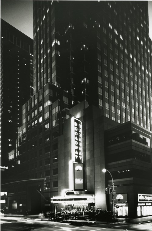 The Broadway Theatre is one of only five playhouses that front on the street named Broadway. It opened in 1924 as B. S. Moss’s Colony, a premiere film house. The most notable film that played there in the early years was Walt Disney’s Steamboat Willie which opened in 1928, and introduced American audiences to an adorable rodent named Mickey Mouse. The theatre went “legit” from 1930 to 1934, when it was re-christened the Broadway. From 1934 to 1940, the house was once again dedicated to motion picture exhibition, and offered the premiere of Disney’s Fantasia in 1939. In 1940, however, it returned to legitimate stage production and, except for a brief stint as a Cinerama movie theatre in the 1950s, has remained in the business of showcasing live theatre ever since.