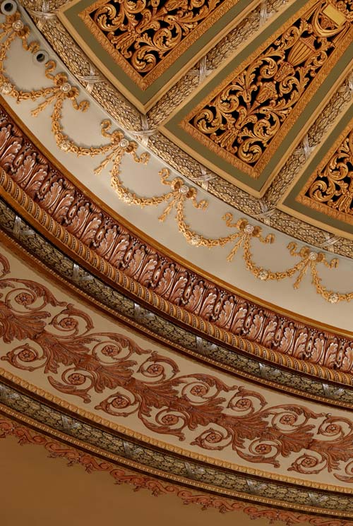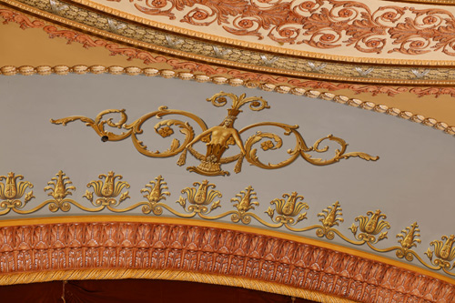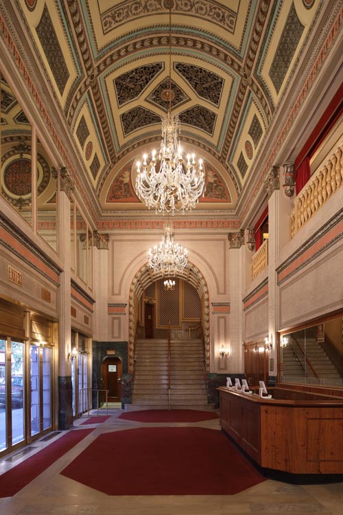 The Forrest is one of architect Herbert J. Krapp's final theatre designs and also one of his more elaborate. Built at a cost of over $2,000,000, it boasted many modern conveniences including wider seats in the orchestra, a smoking room for both men and ladies in the lower lounge and state of the art ventilation and electrical systems. The interior was sumptuously decorated with gilt Adam detailing and silk brocade. The dressing rooms are housed in a separate building and connected by an underground tunnel to the Forrest’s stage.