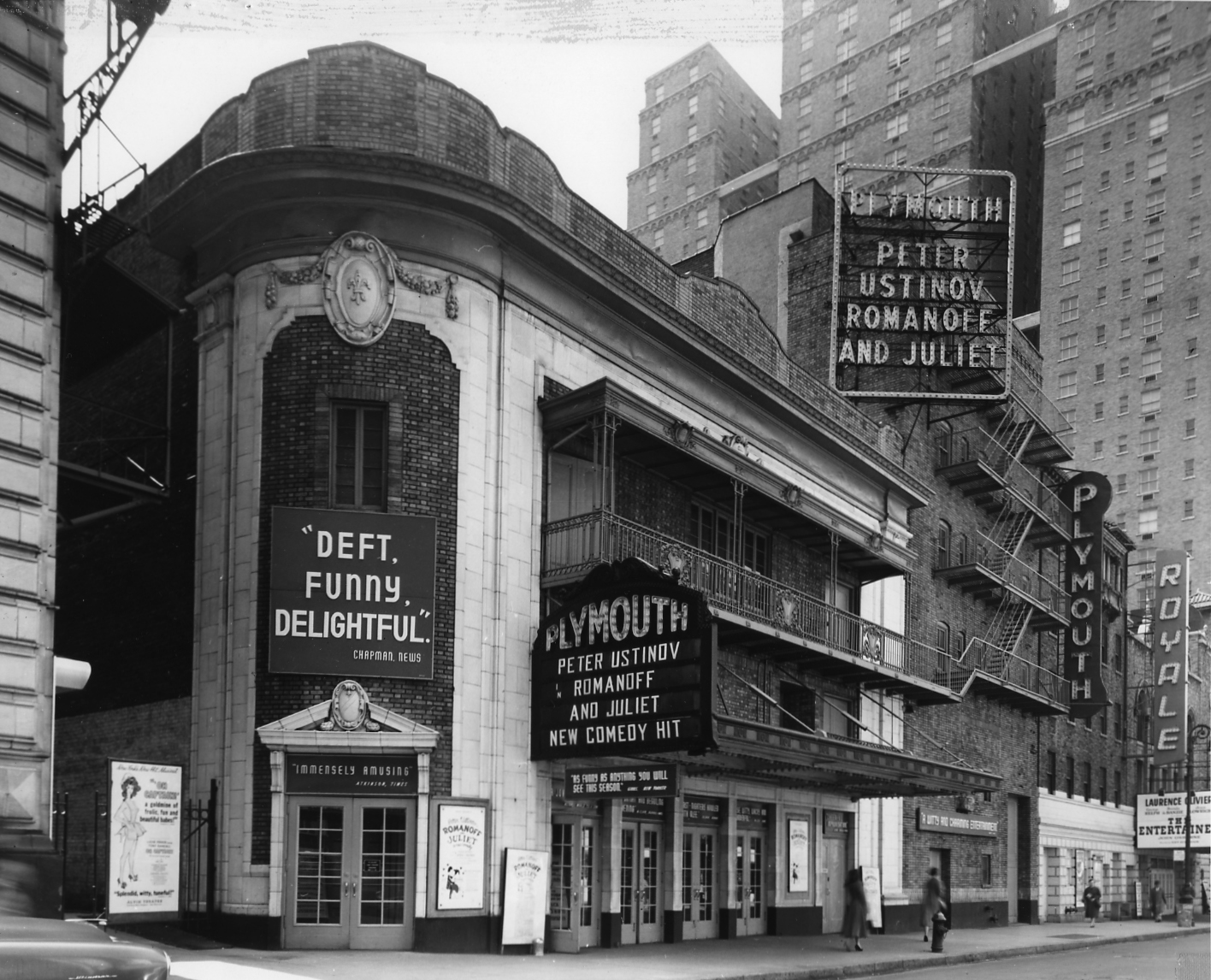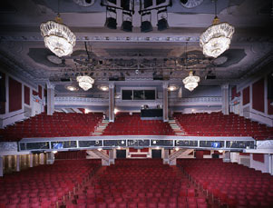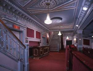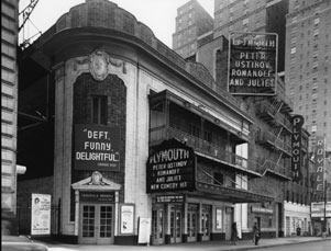 The Schoenfeld was the architect Herbert Krapp’s first independent commission. The interior design motifs, including the Adamsesque detailing, subtly reflect those of the somewhat more ornate Booth and Shubert.