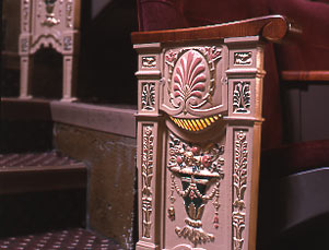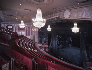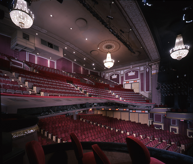 Like many other Shubert theatres, the Imperial was designed by Herbert Krapp in his trademark Adam-style. The recessed ceiling and ornamental panels that grace the walls are elaborately decorated with a number of motifs, including florals and geometrics. The rectangular auditorium is wider than it is deep, which allows most audience members to feel close to the stage and performers.