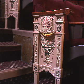 Handrails: Available at the end of every stepped seat row in the Mezzanine.